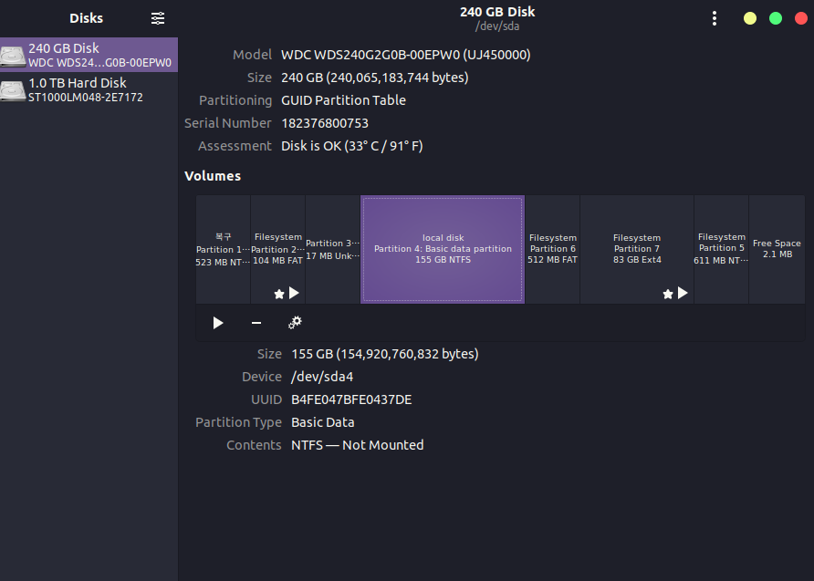 1. 우분투에서 disk 를 검색하여 disk 관리로 들어간다.